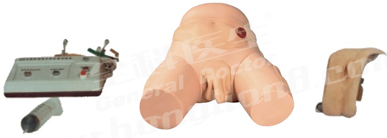 ■ 男性导尿:可以提起阴茎,模拟尿道海绵体部耻骨前伸直,导尿管插入和通过时,有绿色灯光显示(导尿管未通过时,绿灯不亮);插入20mm左右到达膀胱时,有红色灯显示,同时有尿液自导尿管排除,约200毫升。