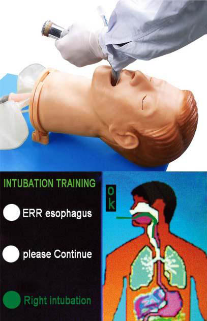 ■ 模拟环状软骨加压操作训练,液晶显示器电子监测环状软骨加压的位置、力度和时间,并能有效判断操作效果,更加有效的讲解Sellick手法。