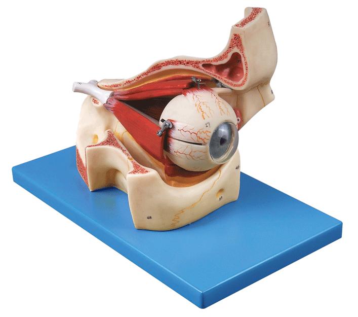 功能特点: ■ 该模型在上颌骨上方将眼球水平切,由眼眶、眼球壁巩膜、上、下半侧、晶状体、玻璃体以及眼球外肌和视神经等10个部件组成,并显示眼球壁(巩膜、角膜、虹膜、睫状体、脉络膜和视网膜)、眼球内容物、眼球外肌、眼副器以及血管和神经等结构,共有50个部位指示标志。 ■ 尺寸:放大3倍,高19cm,宽17.5cm,厚21cm ■ 材质:进口PVC材料、进口油漆、电脑配色、高级彩绘