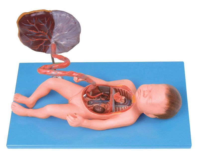 功能特点: ■ 该模型由足月胎儿、内脏器官、胎盘、脐带等6个部件组成。显示胎儿的血液循环器官结构,共有29个部位指示标志。 ■ 尺寸:高48cm,宽28cm,厚30cm ■ 材质:进口PVC材料、进口油漆、电脑配色、高级彩绘