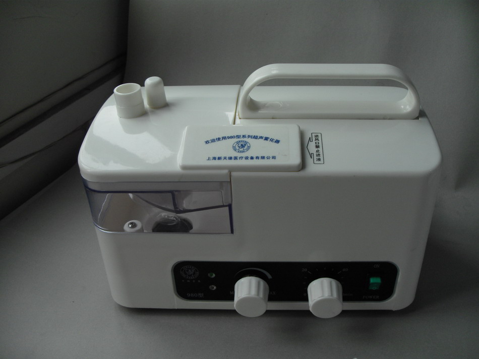 980型超声雾化器 主要性能 1、电源电压:220V±22V 50Hz±1Hz 2、功 率:42VA 3、超声频率:1.7MHz±0.17MHz 4、最大雾化量:>2 ml/min (蒸馏水或饮用水,水温25℃) 5、雾粒直径:1μm~5μm 6、时间控制范围:0 min~60min/连续