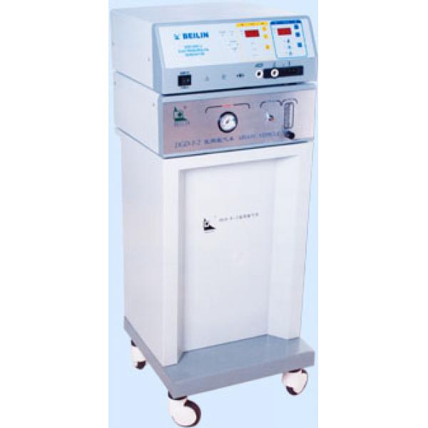 为超高频理疗,其工作原理是采用二枚FU-7组成推挽振荡电路,直流高压的供给由四枚硅二极管组成桥式整流电路输出强度采用调节二枚振荡管的帘栅极电压来解决,使用时将圆形橡皮电极安置于病人五官各部位上,进行治疗。